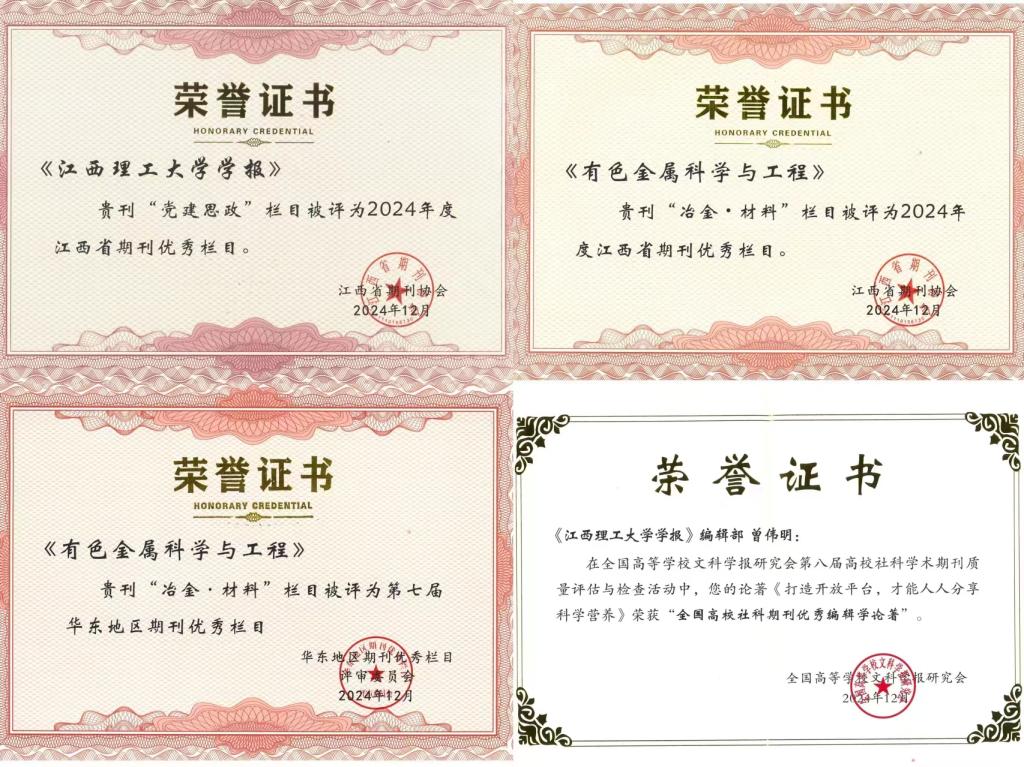 本网讯 近日,江西省期刊协会2024年度理事(扩大)会议上传来喜报,《有色金属科学与工程》“冶金·材料”栏目被评为第七届华东地区期刊优秀栏目和2024年度江西省期刊优秀栏目;《抖阴 学报》“党建思政”栏目被评为2024年度江西省期刊优秀栏目。此外,第八届高校社科学术期刊质量评估与检查结果发布,抖阴 期刊社与出版中心曾伟明主任发表在《光明日报》文章《打造开放平台,才能人人分享科学营养》荣获“全国高校社科期刊优秀编辑学论著”。