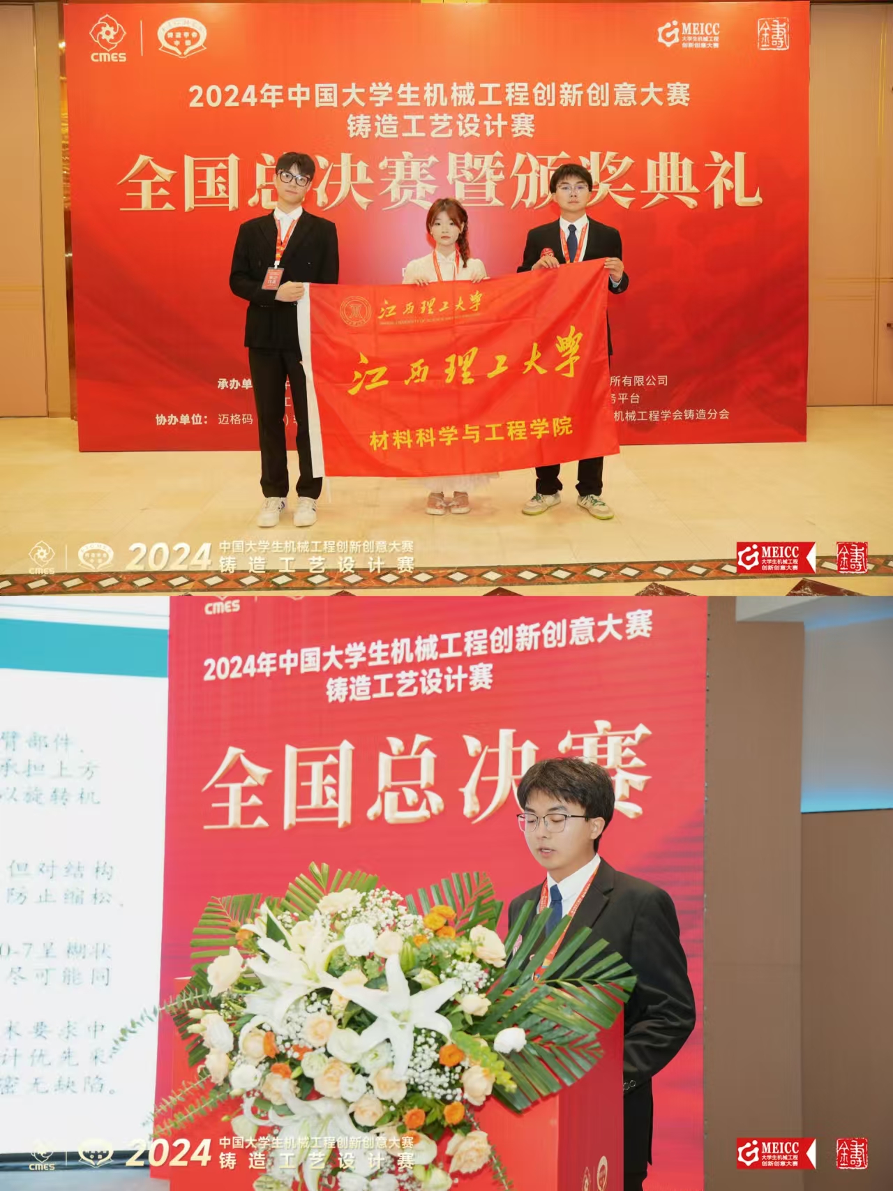在专业课最多的大三,吴若琛作为金材专业代表,前去昆明理工大学材料学院交流学习,在昆工的这一年里,他学会了在不同学术背景下寻找学习与竞赛的平衡点。他一边刻苦努力学习专业知识,一边担任第十五届中国大学生铸造工艺设计大赛的队长。担任大赛队长,对吴若琛来说是一次极大的锻炼。从图纸分析、Solidworks三维建模、工艺设计、AnyCasting模拟计算、AutoCAD工艺绘制、资料撰写到决赛答辩,他全程参与了项目的每一个环节。决赛答辩前夕,身为队长的吴若琛连续每天进行十余场的模拟演练,成功斩获国赛一等奖,这不仅为江西省赢得了十年以来首个国赛一等奖的殊荣,同时也打破了学校的校史记录,获奖情况被学校官网、公众号,大连日报等媒体报道。