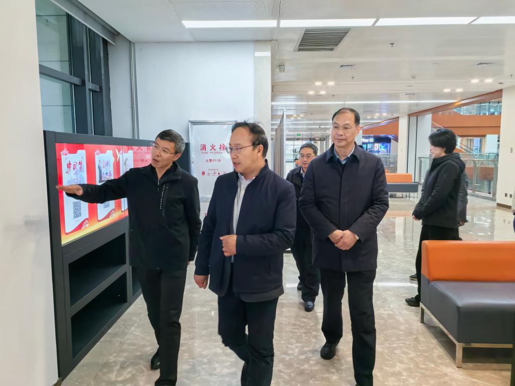 会前,金一斌一行前往图书馆,观看学校办学成就展、阳明文化长廊和客家文化长廊。