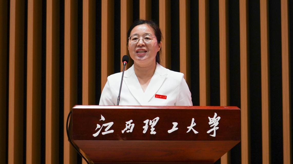 学生代表、中国国际大学生创新大赛(2024)国家级银奖获得者、2025年度江西省“最美大学生”、稀土学院2023级博士研究生潘锡翔分享了自己在江理的求学经历以及科研创新中取得的丰硕成果。他表示自己将始终牢记校训,秉承江理特质,努力将所学服务于国家需要,为实现民族复兴贡献青春力量,以此回报师恩。