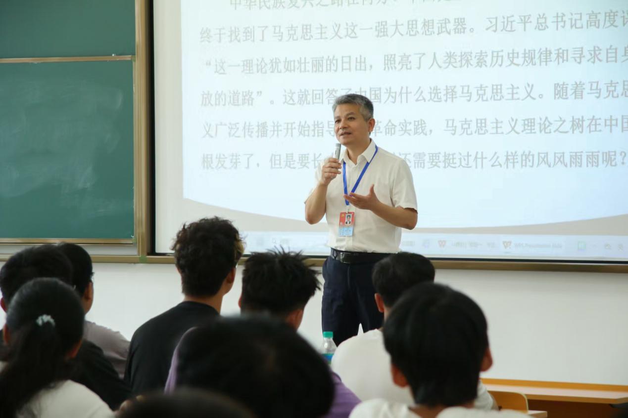 副校长黄志繁先后走进《马克思主义基本原理》和《毛泽东思想和中国特色社会主义理论体系概论》课堂。他在课后交流中勉励同学们尽快进入学习状态,深化对思政课的理解,运用马克思主义提升综合素养,以高度的责任感和使命感完成学业、成就梦想。