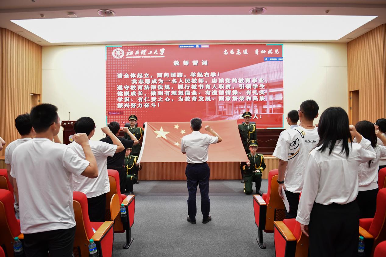 随后,全体新进教师庄严宣誓、合唱校歌《我们从这里启航》,并共同签订《师德师风承诺书》,彰显了对教育事业的忠诚与担当。