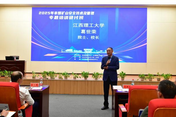 安全工程学院承办的“2025年非煤矿山安全技术及管理专题培训研讨班”在赣州成功举办。中国稀土集团有限公司、江西铜业集团有限公司、江西钨业集团有限公司、广西华锡矿业有限公司等多家单位参与本次培训。会议围绕“强化安全技术创新,提升矿山管理水平”这一主题,进行了一系列深入交流与探讨。