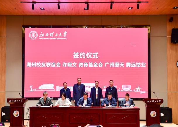 会上,举行了捐赠签约仪式。深圳校友联谊会创始会长、采矿工程1981届校友许晓文,广州灏天工程顾问有限公司,赣州腾远钴业新材料股份有限公司,湖州校友联谊会向教育基金会进行了捐赠,并签署捐赠协议。刘祖文、葛世荣、杨斌、温和瑞共同见证签约仪式并合影留念。