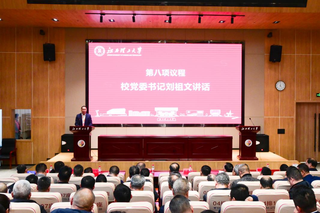 刘祖文代表学校讲话。他表示,本次会议既是一次回望光辉历程、共叙江理情谊的大团圆,更是一次面向未来、凝聚力量、共绘蓝图的大盛会,机会尤为珍贵,意义格外深远。他从综合实力大幅提升、学科建设成效显著、人才培养提质增效、科技创新硕果累累、服务社会贡献凸显等方面介绍学校近年来的发展成就。他表示,本次会议内容充实、议程紧凑、成果丰硕,各位校友立足行业前沿、聚焦母校发展,在人才培养、校企合作、校友协同等方面提出了诸多真知灼见。他强调,学校取得的成绩离不开一代代校友的拼搏与奉献,学校未来的发展蓝图,更需要全体校友同心同向、携手并肩。面向未来,他对校友工作提出三点希望:一是拓宽国际视野,系统构建互联互通的全球校友网络;二是聚焦学科特色,全力推进“矿业发展校友经济圈”建设;三是深化情感联结,持续培育具有雁阵效应的校友文化。