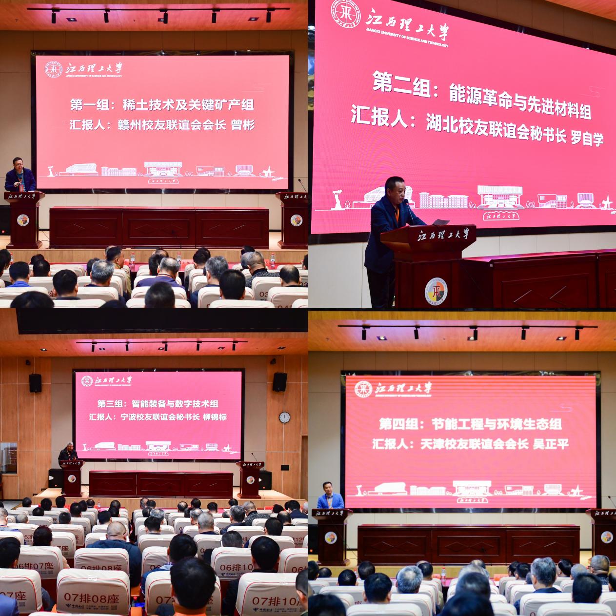 汇报交流环节,赣州校友联谊会会长曾彬、山东半岛校友联谊会会长林向峰、天津校友联谊会会长吴正平、湖北校友联谊会秘书长罗自学、宁波校友联谊会秘书长柳锦标分别代表所在组别向大会报告交流成果。校友们一致表示对葛世荣所作“推进教育科技人才一体改革,建设稀土及关键矿产领域世界一流大学”专题宣讲感到无比的振奋和骄傲,并将积极响应母校号召,与母校同心同德、同向同行,为助力母校在新征程上续写华章、再创辉煌贡献力量。
