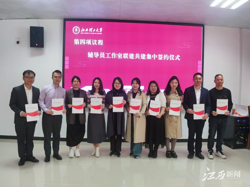 、华东交通大学、江西农业大学、河南农业大学、福建理工大学、四川旅游学院、南昌大学抚州医学院、广东外语外贸大学南国商学院广东女子学院等20家辅导员工作室主持人签署了联建共建协议。