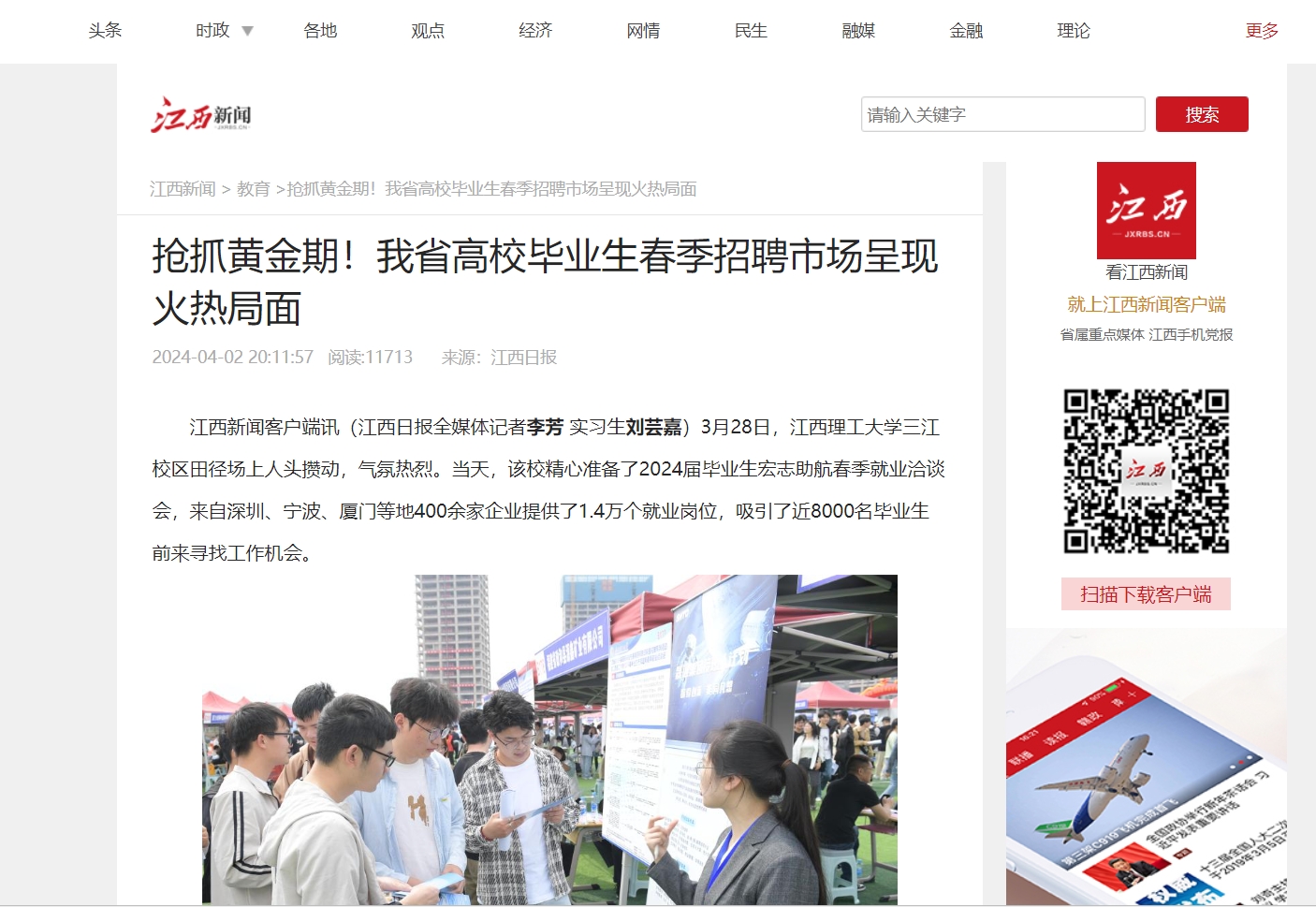 ▲江西省2024届高校毕业生春季百校联动校园招聘系列活动暨抖阴