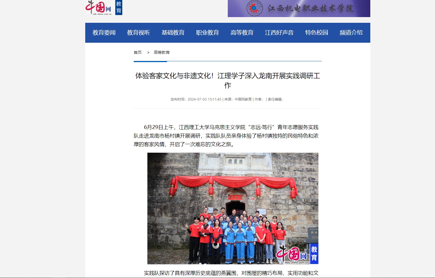 马克思主义学院“志远·笃行”青年志愿服务实践队走进龙南市杨村镇开展调研,实践队队员亲身体验了杨村镇独特的民俗特色和浓厚的客家风情,开启了一次难忘的文化之旅。