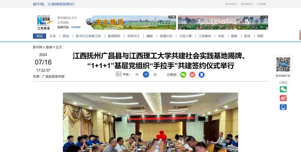 与江西抚州广昌县共建社会实践基地揭牌、“1+1+1”基层党组织“手拉手”共建签约仪式举行,广昌县委书记吴自胜,抖阴
