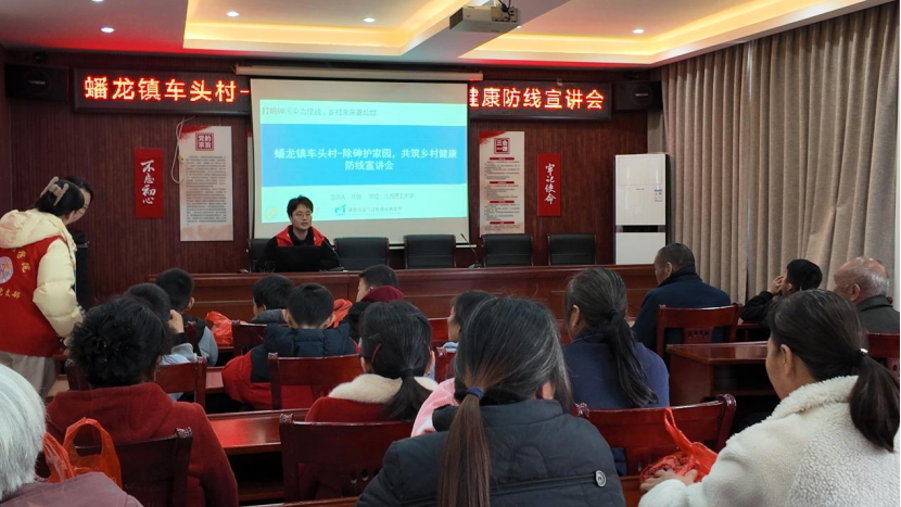 龚傲带领团队成员于2025年3月在赣州市车头村向群众讲解砷污染来源、危害及治理技术在农村的应用。