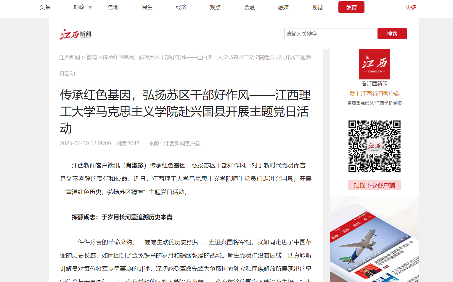 江西新闻客户端讯(肖淑珍)传承红色基因,弘扬苏区干部好作风,对于新时代党员而言,是义不容辞的责任和使命。近日,抖阴