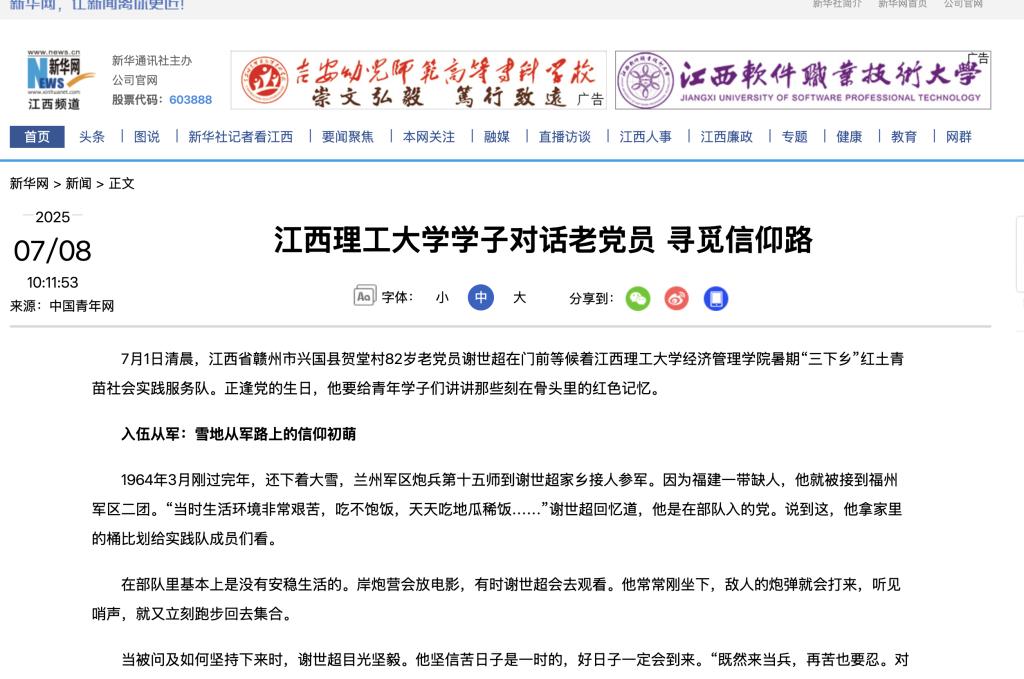 经济管理学院暑期“三下乡”红土青苗社会实践服务队。正逢党的生日,他要给青年学子们讲讲那些刻在骨头里的红色记忆。