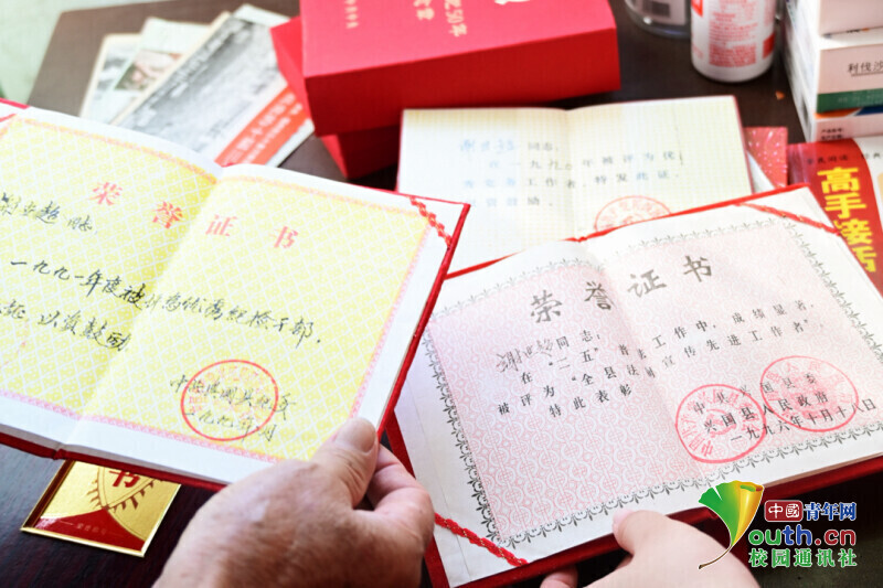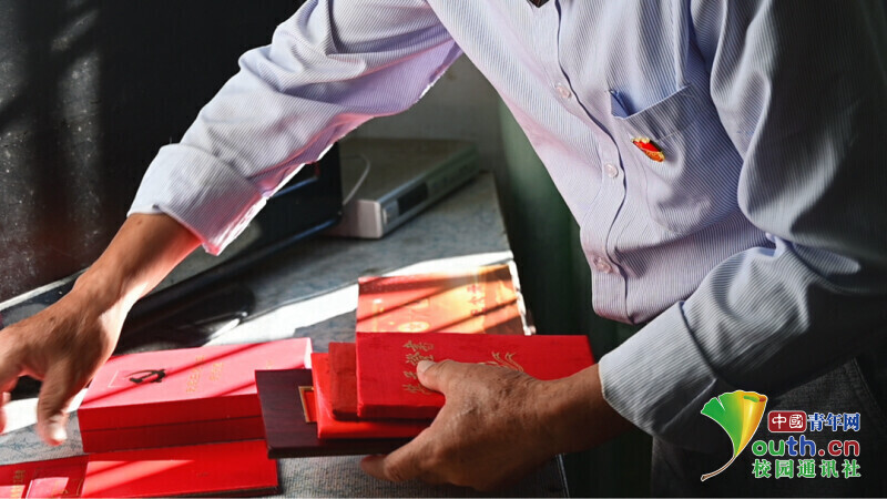 这份刻入生命的信仰,不仅印在他的记忆里,更被他妥帖地珍藏在岁月的褶皱中。谢世超激动地来到书桌前,从抽屉里拿出跟随他几十年的物品,与成员们共同翻看那些承载着岁月印记的老物件。不论是“光荣在党50年”的纪念章,还是堆满书桌的荣誉证书,都是组织对谢世超的肯定。