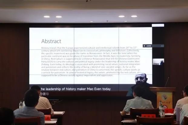 会议第二阶段,安徽大学马克思主义学院原院长吴学琴,复旦大学马克思主义学院教授金伟,北京第二外国语学院首都对外文化传播研究院院长曲茹,毕业于巴基斯坦拉瓦尔品第PMAS干旱农业大学计算机科学(人工智能)专业的Muhammad Asim Khan分别在会上做了精彩的主题发言,从不同角度分享了红色文化国际传播的理论与实践成果。