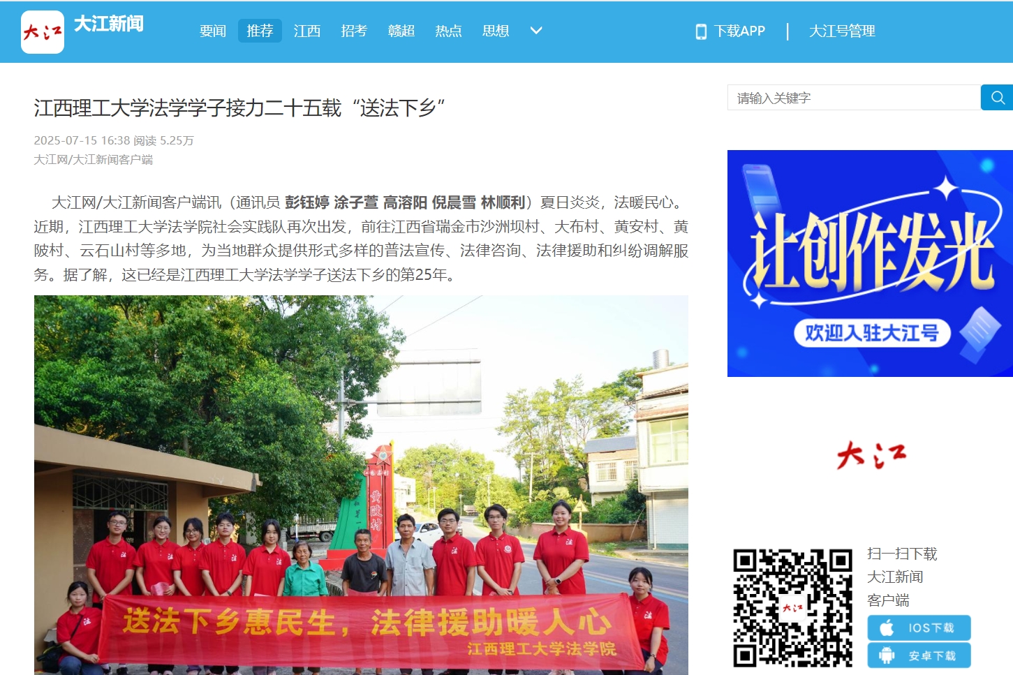 法学院社会实践队再次出发,前往江西省瑞金市沙洲坝村、大布村、黄安村、黄陂村、云石山村等多地,为当地群众提供形式多样的普法宣传、法律咨询、法律援助和纠纷调解服务。据了解,这已经是抖阴