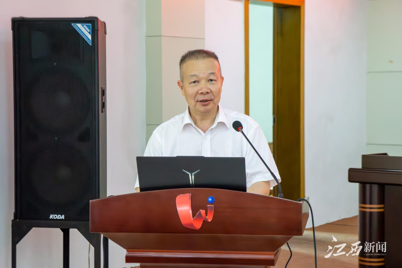 ▲马琮博讲述学校与江西矿业血脉相连的育人篇章