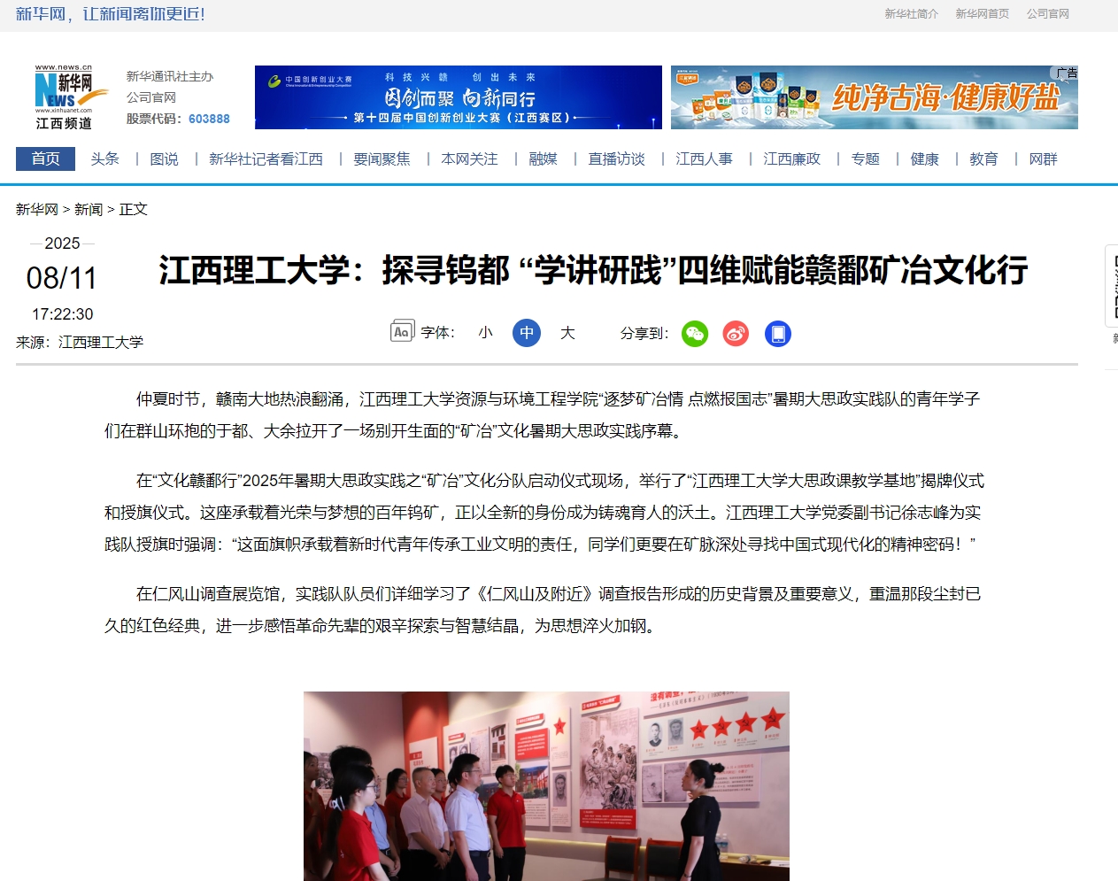 资源与环境工程学院“逐梦矿冶情 点燃报国志”暑期大思政实践队的青年学子们在群山环抱的于都、大余拉开了一场别开生面的“矿冶”文化暑期大思政实践序幕。