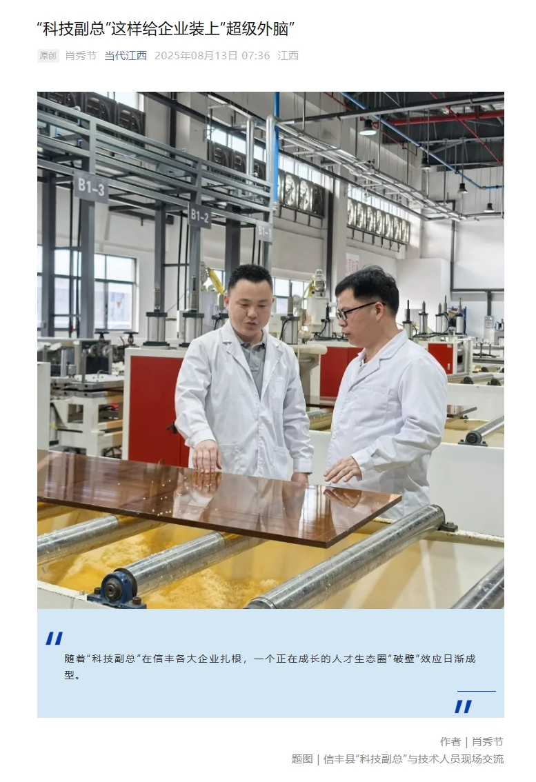 随着“科技副总”在信丰各大企业扎根,一个正在成长的人才生态圈“破壁”效应日渐成型。