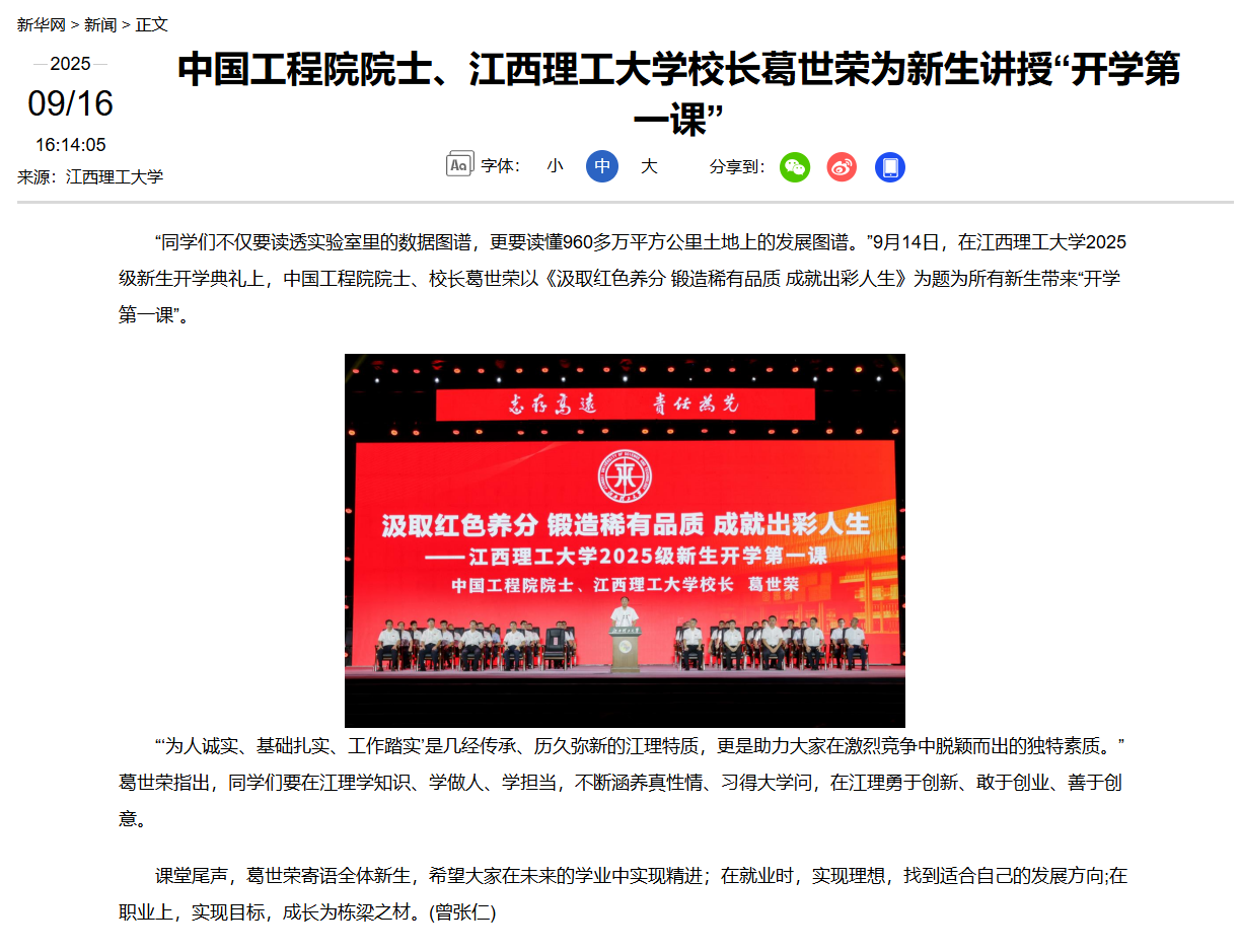 “同学们不仅要读透实验室里的数据图谱,更要读懂960多万平方公里土地上的发展图谱。”9月14日,在抖阴 2025级新生开学典礼上,中国工程院院士、校长葛世荣以《汲取红色养分 锻造稀有品质 成就出彩人生》为题为所有新生带来“开学第一课”。