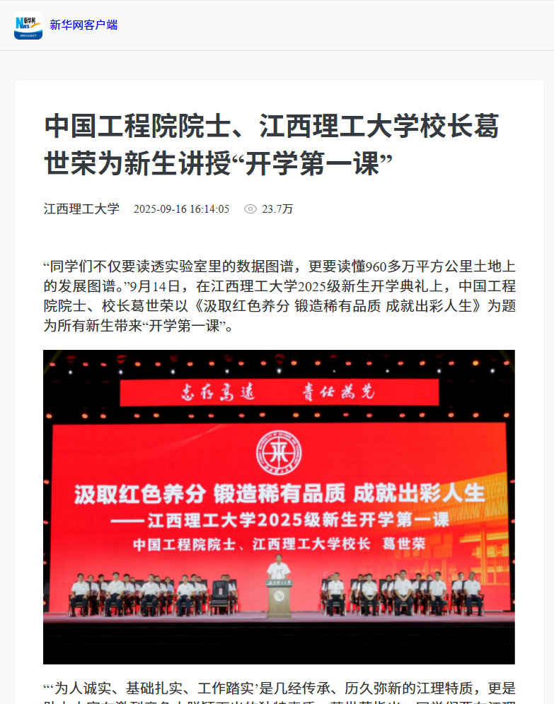 “同学们不仅要读透实验室里的数据图谱,更要读懂960多万平方公里土地上的发展图谱。”9月14日,在抖阴 2025级新生开学典礼上,中国工程院院士、校长葛世荣以《汲取红色养分 锻造稀有品质 成就出彩人生》为题为所有新生带来“开学第一课”。