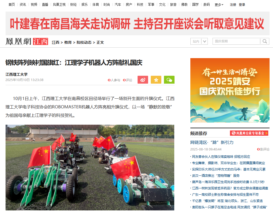 上一条:《凤凰新闻》:钢铁阵列映衬国旗红:江理学子机器人方阵献礼国庆 下一条:《大江网》:抖阴 :钢铁阵列映衬国旗红