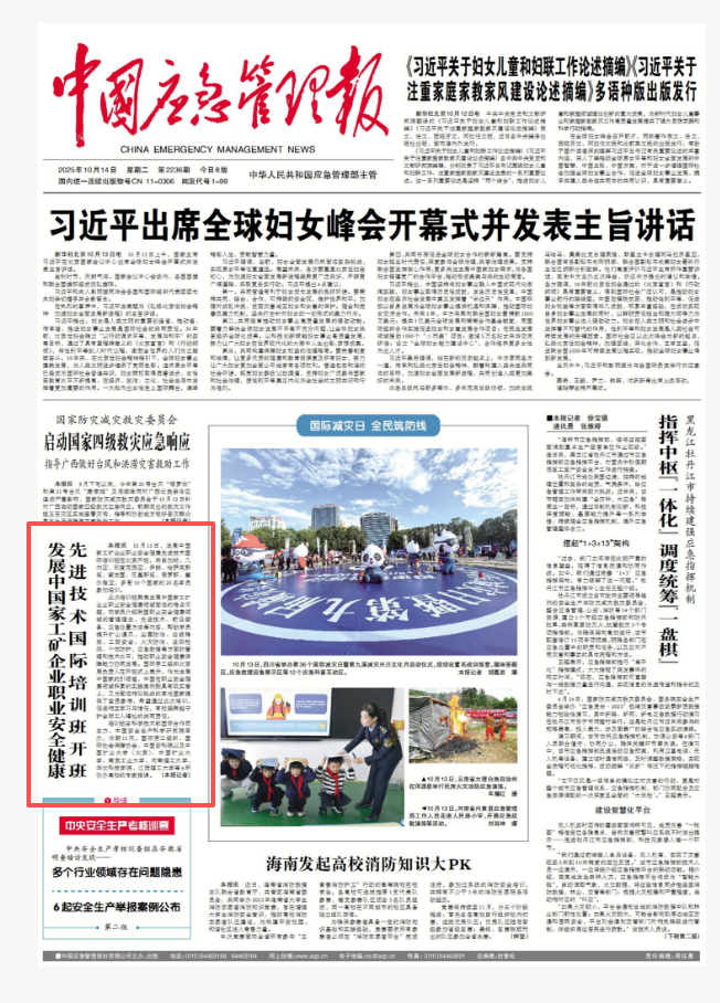 此次培训班聚焦发展中国家工矿企业职业安全健康领域面临的难点问题,向学员介绍我国职业安全健康领域的管理理念、先进技术、前沿装备、应急处置方法等内容,帮助学员提升矿山通风、尘毒防治、边披稳定、工贸安全、火灾防治、监测检测、个体防护、应急救援等方面的管理和技术水平,推动职业安全健康保障能力协同发展。国际劳工组织北京局负责人在开班式上表示,作为发展中国家的引领者,中国在职业安全健康领域积累的实践案例既具有现实意义,又为面临相似挑战的其他国家提供了宝贵参考,希望通过此次培训,促进相互学习与信任,有效凝聚起守护全球工人福祉的共同责任。
