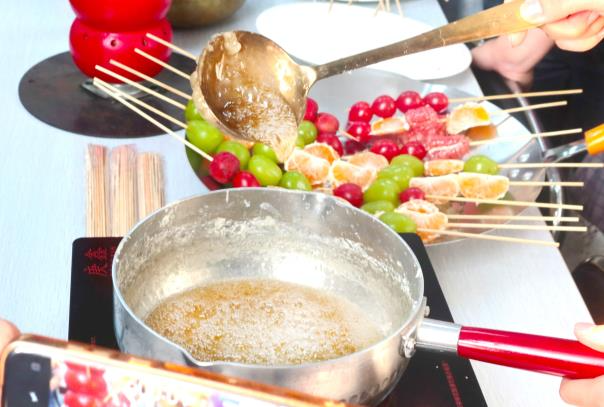 当古法糖艺遇上现代工具,匠心传承迸发出新的火花。伴着活动现场浓郁的果香,大家在志愿者的带领下体验着一项传统技艺——熬糖。当糖块渐融成琥珀色糖浆,同学们纷纷拿起热熔糖画笔开始制作糖画,现场形态各异的糖画成品是同学们无限创意与想象力的生动写照。