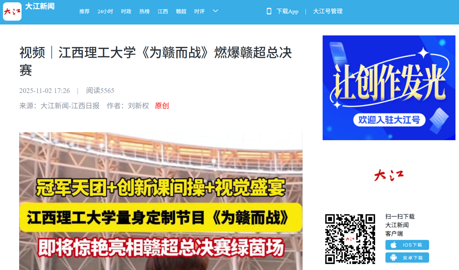 上一条:《江西日报视频号》:抖阴 量身定制节目《为赣而战》即将惊艳亮相赣超总决赛绿茵场 下一条:《中国教育报》:“三创”融合培养创新人才 ——抖阴 打造“思创、专创、科创”深度融合育人体系