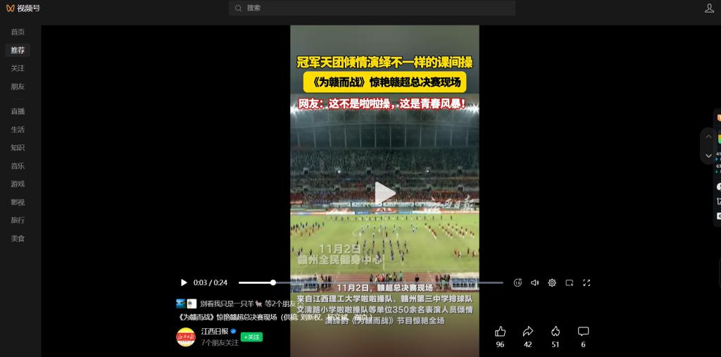 上一条:《凤凰网》:为赣而战!抖阴 啦啦操队闪耀赣超总决赛 下一条:《江西日报视频号》:抖阴 量身定制节目《为赣而战》即将惊艳亮相赣超总决赛绿茵场