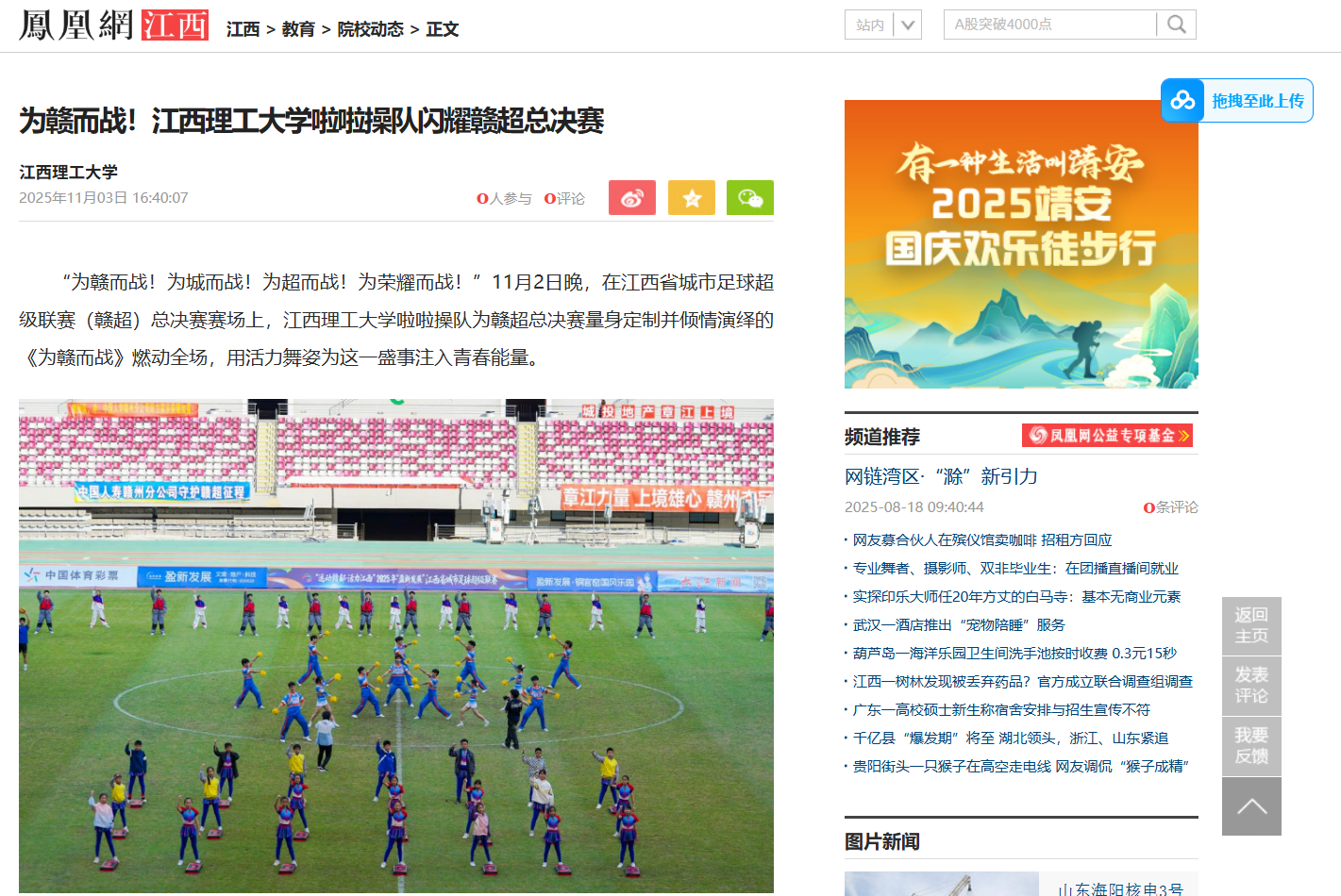 啦啦队助理教练刘炜表示:“希望通过这次表演,向全省球迷传递青春自信、团队拼搏与健康快乐的体育精神,也展现出在赣州这片红色土地上江理青年的奋进力量。”未来,抖阴