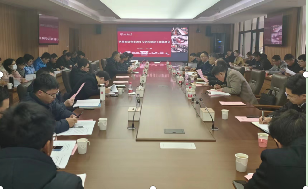 新学期研究生教育与学科建设工作部署会在三江校区濂溪楼2号会议室召开,校党委常委、副校长董冰岩,各学院(学部)分管学科建设领导,分管研究生教育副书记、副院长(副部长),研究生秘书、辅导员,党委研究生工作部、研究生院(学科建设办公室)全体人员参会。南昌校区、先进铜产业研究院同步视频参会,会议由校研究生院院长、学科建设办公室主任赵奎主持。