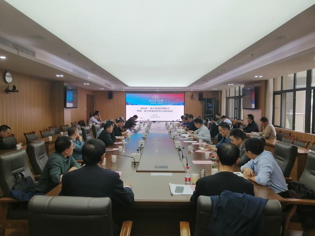 2024年一流专业建设调度会暨国家一流专业建设攻坚行动启动会在三江校区濂溪楼2号会议室召开。校党委常委、副校长黄志繁出席会议,国家一流专业建设点相关学院分管教学工作副院长、教研室主任及教务处全体人员参加会议。会议由校教务处处长潘春荣主持。