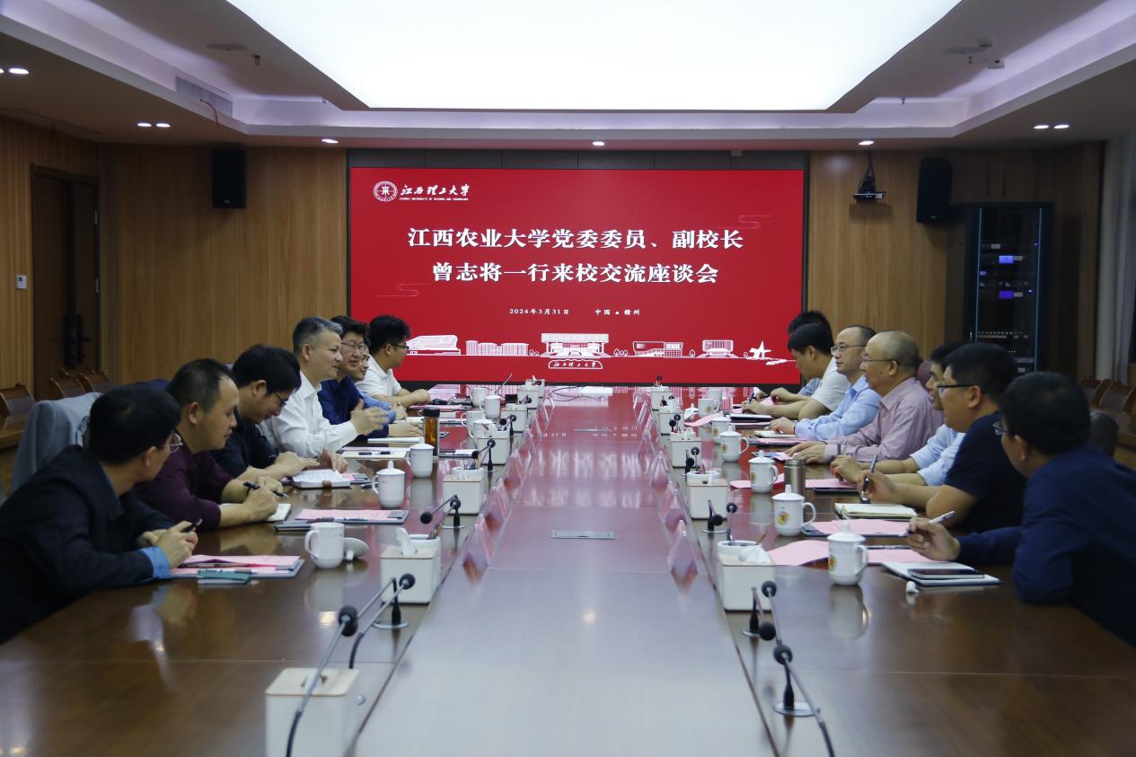 本网讯 3月31日上午,江西农业大学党委委员、副校长曾志将一行来访。校党委常委、副校长董冰岩会见来宾并召开交流座谈会。校党委研究生工作部、党委学生工作部、基建与后勤处、校园服务与校产中心相关负责人参加会议。座谈会由校党委学生工作部部长贾群燕主持。