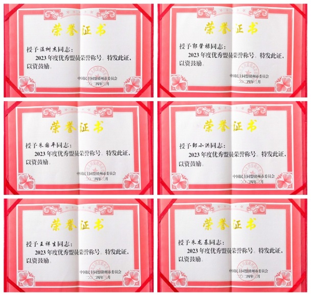 会议表彰了2023年度盟务工作先进集体、社情民意信息工作先进个人以及优秀盟员。抖阴 民盟基层委员会荣获2023年度先进基层组织,温树杰、邹小洪、朱国平、朱龙基、王祥生、郭肇禄等盟员教师获评2023年度优秀盟员荣誉称号。