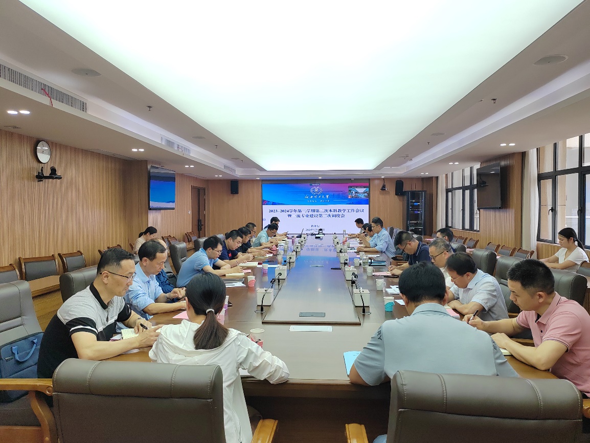 在三江校区濂溪楼2号会议室召开了本学期第二次本科教学工作会议暨一流专业建设第二次调度会。校党委常委、副校长黄志繁出席会议,相关职能部门负责人、各学院分管教学工作副院长及教务处全体人员参加会议。会议由校教务处处长潘春荣主持。