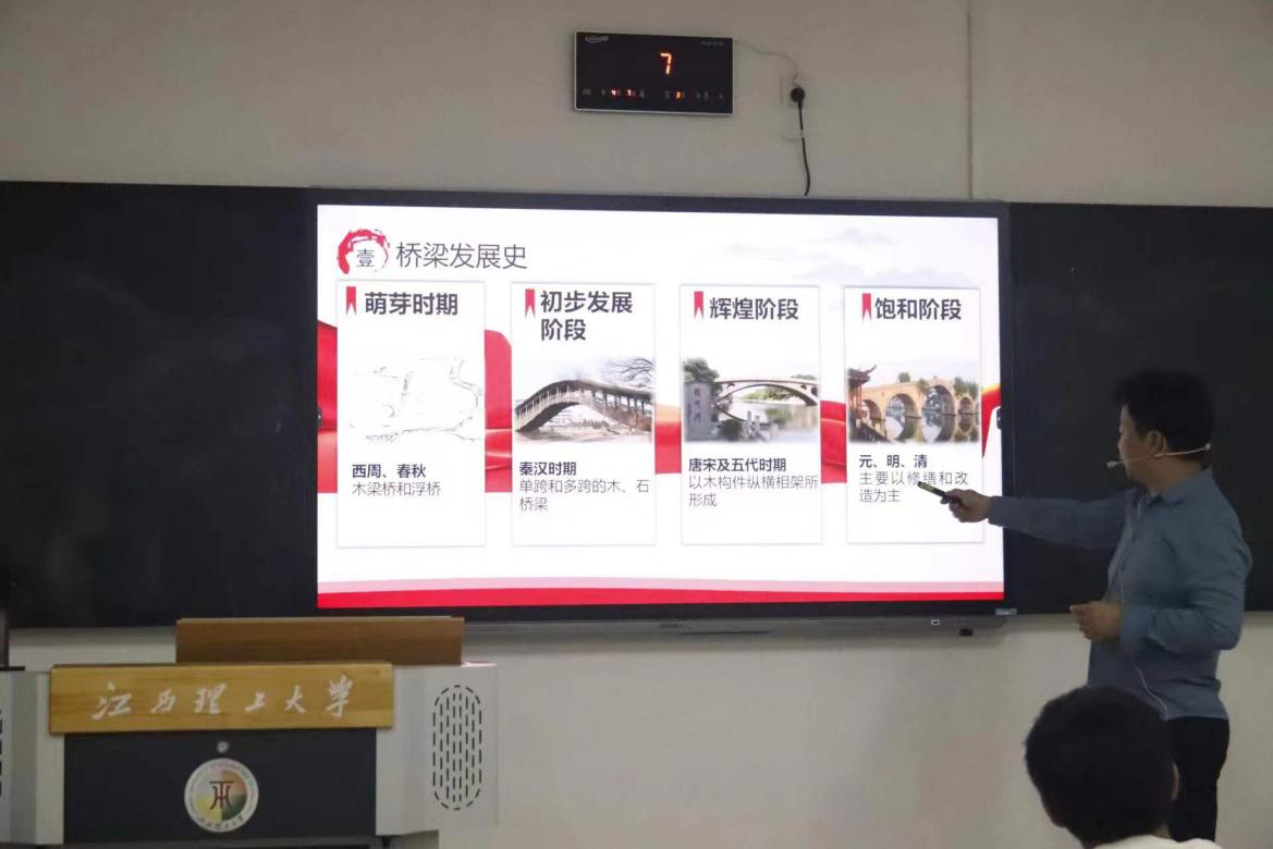 特聘教授丰土根结合土木工程专业,以“桥梁——我的新时代”为主题在土木与测绘工程学院开展了一场“弘扬劳模精神 争做时代先锋”的主题思政课。通过讲述我国路桥历史与桥梁科技知识,“寻访”红色桥梁等,进一步弘扬了劳模精神与工匠精神,以“专业+思政”的形式,加强了学生对专业的认同感。