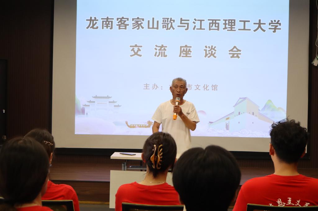 “客家山歌多嘹亮,天籁之音入人心。”实践队与龙南市客家山歌省级非遗传承人陈科发进行了交流与座谈,陈老先生为大家演唱了自作词曲的山歌,并现场教授实践队队员山歌演唱的技巧,剖析了其中的客家文化意蕴。在交流感悟环节,实践队队员张昊表示:“我们应该始终高度重视客家山歌的保护与传承。客家山歌不仅仅是旋律与歌词的简单组合,它更是客家人民智慧与情感的结晶,是连接过去与未来的桥梁。”