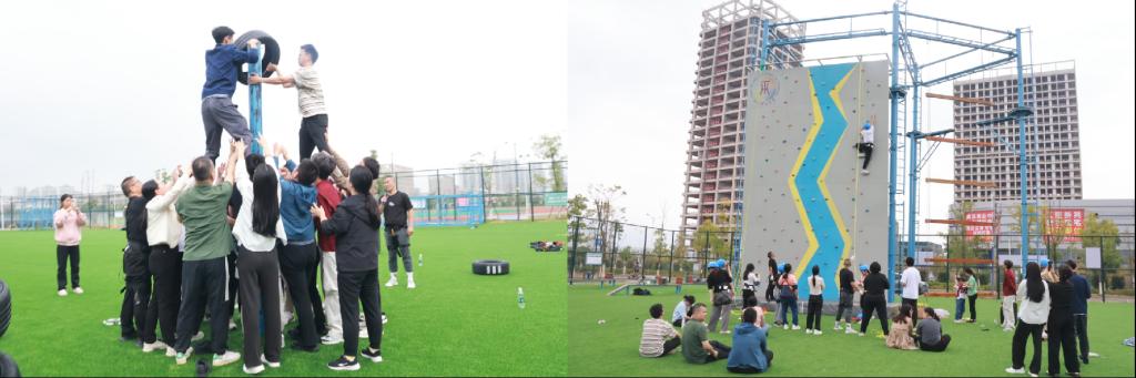 活动首日,在武术馆内,“飞盘归位”“水弹接力”等分组互动游戏迅速拉近了老师们的距离,大家在欢声笑语中破冰交流,确定队名和口号,凝聚起团队力量。次日,在心理健康中心团辅室,老师们通过学习手语舞、参与“步步惊心”“速度与激情”等游戏活动,进一步提升了团队默契,有效缓解了工作压力、调节了情绪,还锻炼了身体协调性。最后一日,素质拓展基地的“击鼓传球”“移花接木” 等趣味项目充分激发了老师们的积极性与协作力,而“飞索轮滑”“空中断桥”等挑战项目则让老师们在确保安全的前提下,凭借勇气和毅力突破自我,彰显了团结奋进的风采。
