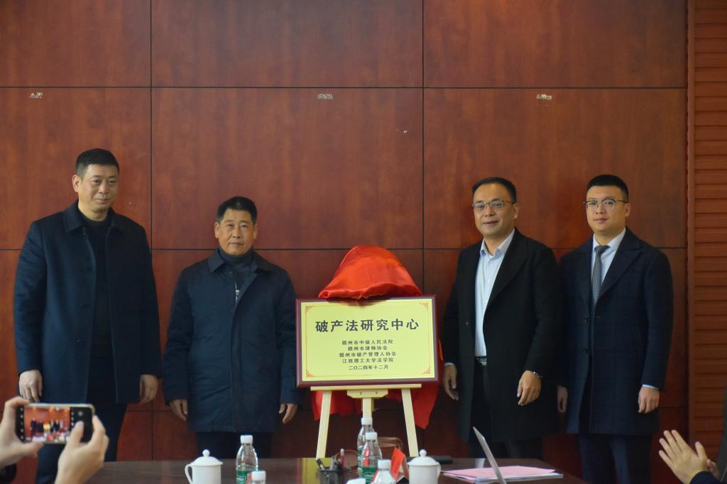 仪式上,张春明、项波、郭基玉、方孝安共同为破产法研究中心揭牌。