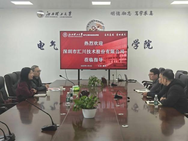 与深圳市汇川技术股份有限公司在三江校区召开座谈交流会。校党委常委、副校长龚姚腾,汇川技术股份有限公司校企合作部总经理茹春艳,数字化事业部总监陈潇男出席会议,抖阴