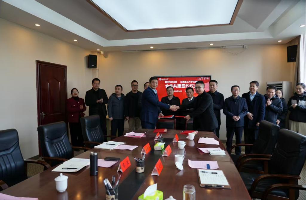 与赣州市司法局合作共建签约仪式在红旗校区法学院210会议室举行。校党委常委、副校长黄志繁,赣州市司法局党组书记、局长郭佩群等出席。签约仪式由法学院党委书记陈龙泉主持。