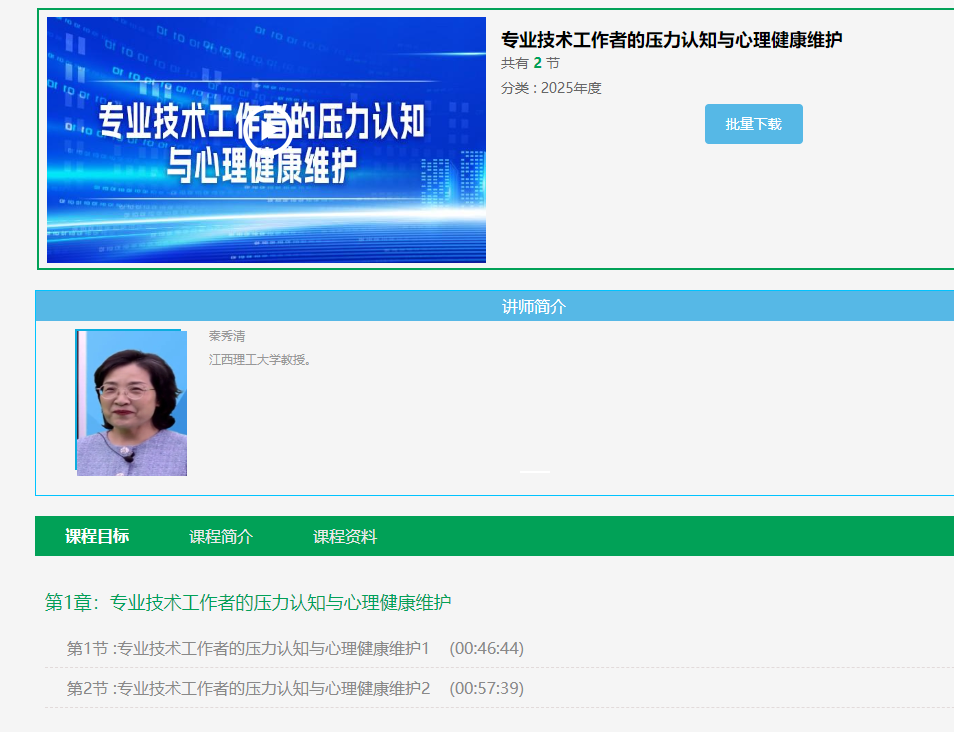 本网讯 近日,国家专业技术人才知识更新工程指导协调小组办公室公布了2025年专业技术人员公需科目共享课件名单(共35项),由抖阴 继续教育学院、教育培训中心运管的国家级专业技术人员继续教育基地报送的《专业技术工作者的压力认知与心理健康维护》(讲座教师:秦秀清教授)成功入选(江西省唯一一项)。