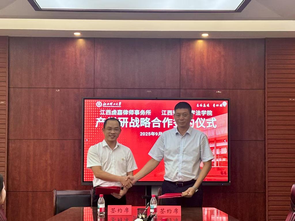 红旗校区法学院210会议室举行“产学研战略合作”签约仪式。江西虔嘉律师事务所主任朱海强一行,法学院党委书记陈龙泉、院长项波、党委副书记欧阳鹏、副院长张奇等出席仪式。